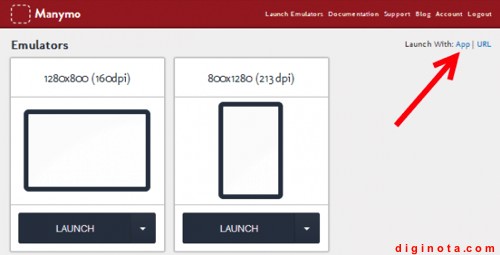 La siguiente vez que te conectes a Manymo con tu cuenta de usuario, no tendrás que volver a subir el APK: Manymo recuerda las apps que ejecutas (en este caso, WhatsApp) y te permite acceder directamente a ellas. Sólo tienes que volver a hacer clic en Launch with: App.
